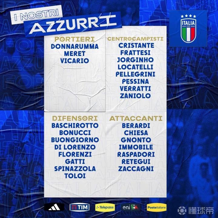 意大利国家队公布了6月国际比赛日期间的大名单,若日尼奥、维拉蒂领衔,归化国脚雷特吉也在列。这次大名单中,国际米兰球员并没有入选,由于球队将要参加欧冠决赛,这也是很正常的。在6月的国际比赛日期间,意大利将参加欧国联决赛圈的比赛,其半决赛对手为西班牙。