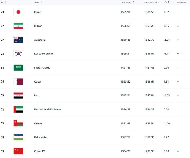 中国男足在最新的FIFA排名中上升了两位,位列第79位,并继续保持着亚洲第11位的位置。这是中国男足近期在国际比赛中取得的突破,也是球队备战未来比赛的一个好的开端。