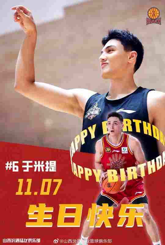 11月7日讯 今天,山西男篮在官博上给今夏引进的新援于米提送上了生日祝福。