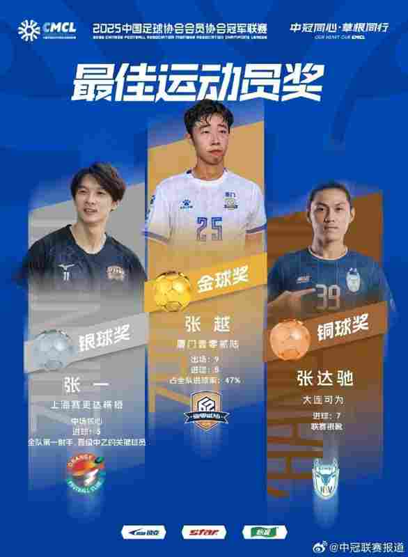 中冠各奖项名单:厦门壹零贰陆球员张越摘得金球奖和金靴奖 2025-12-04 00:53:56