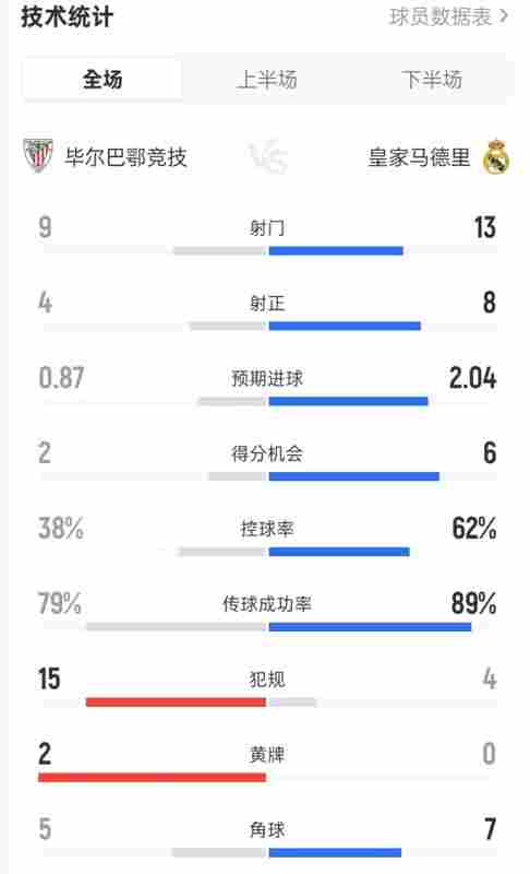 毕巴0-3皇马全场:射门9-13,射正4-8,控球率38%-62%,犯规15-4 2025-12-05 02:44:15