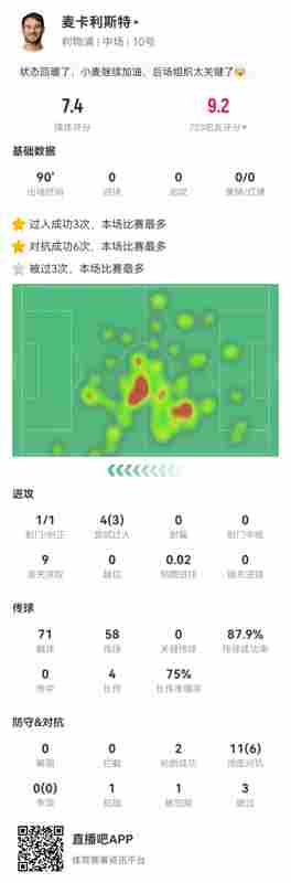 麦卡利斯特本场2抢断+3成功长传3被过 11对抗6成功 获评7.4分 2025-12-02 02:56:43
