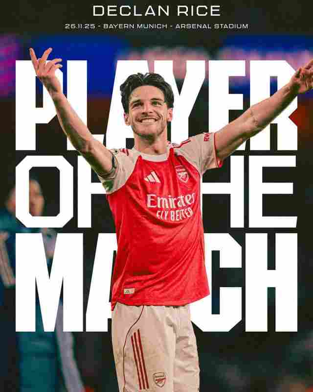 覆盖全场,赖斯当选与拜仁一役阿森纳队内最佳球员 2025-11-28 10:21:13