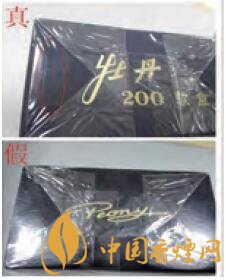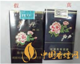 真品卷烟采用绒面印刷工艺,花形悉心勾勒,更显质感,图案“牡丹花”更为写实。假冒伪劣“牡丹(软蓝)”多以旧版“牡丹花”造型进行模仿,其图案与真品存在明显差异。