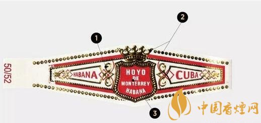 标准的好友茄标以白色为底色,茄标中间是抢眼的红色盾牌,盾牌中间印有HOYO DE MONTERREY的品牌名,产地名HABANA和CUBA印在盾牌两侧。