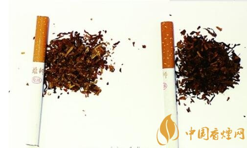 真烟烟支过滤嘴长度为25mm,烟丝切丝宽度均匀,颜色呈橘黄色,掺配有少量膨胀叶丝、膨胀梗丝和造纸法再造烟叶;假烟烟支过滤嘴较短,长度约为20mm,制丝工艺粗糙,颜色呈暗褐色,大量梗丝未经过膨胀处理,一般无膨胀叶丝和造纸法再造烟叶,与真品特征存在明显差异。