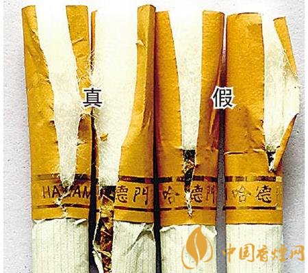 真品卷烟滤嘴棒长度为2.5cm;假冒卷烟为节省成本,滤嘴棒长度一般在2cm左右。