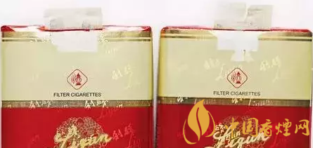 真烟封签中间“烟徽”颜色较深,背面采用机器上胶,为两条靠边的平行胶痕。(上真下假)