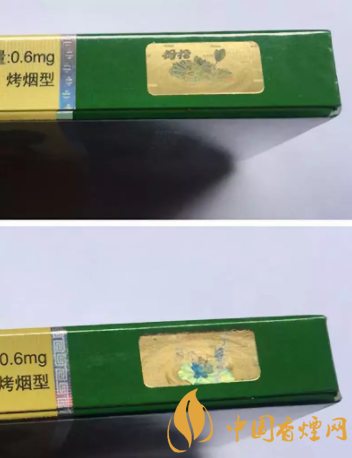 真品卷烟镭射防伪标志中的图案清晰、完整, “荷花”两字立体感强,用放大镜观察可看到清晰的“HEHUA”微缩字体;假烟镭射防伪标志中的图案模糊且不完整,“荷花”两字粗糙、死板,用放大镜观察“HEHUA”微缩字体很模糊。
