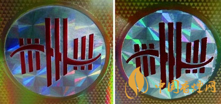 商标纸印刷工艺差异对比:真品小盒正面商标LOGO采用凹凸一次成型技术,商标图案套色定位准确无误,成像效果层次分明,无脱漆掉色;假烟多采用高倍扫描仪仿印,印刷工艺粗糙,套色不准,边缘有明显脱漆掉色,与真品印刷工艺存在明显差异。